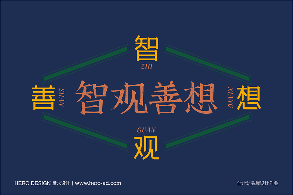 智觀善想標(biāo)志設(shè)計(jì)歸本還原,通過字體的設(shè)計(jì),來展示名稱所寓意的豐富內(nèi)涵。標(biāo)志通過三種字體形態(tài)的組合,分別以宋刻體承繼傳統(tǒng)、無襯線體展示當(dāng)下、像素體昭示未來,通過綜合美學(xué)發(fā)展的過程,還原品牌、創(chuàng)意以及美的發(fā)展過程,構(gòu)建起智觀善想貫通古今、兼融并包的理念體系,最終形成完整而系統(tǒng)的視覺表現(xiàn)。字體的層疊,展現(xiàn)出成長(zhǎng)的萌動(dòng),中間的橫線串連四方,表現(xiàn)出智觀善想對(duì)生活的熱愛,以及在商業(yè)表象里創(chuàng)造品牌奇跡的魄力。
