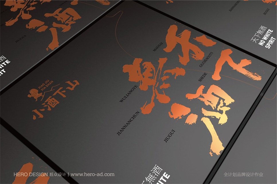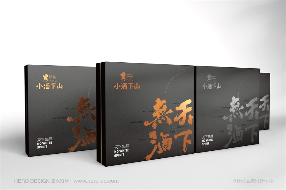 后眾設(shè)計攜手小酒下山,從消費飲用場景入手,小酒下山系列混裝小酒,將不同品牌的小酒打包銷售,特別適合聚會品鑒,將多樣化的飲用場景和消費體驗感傳達給消費者。同時,基于品質(zhì)相伴美好生活這一訴求,以中華十大名酒為基礎(chǔ),增加小酒的禮品及收藏屬性,打造天下無酒概念,一次飲盡天下美酒,自此天下再無酒。