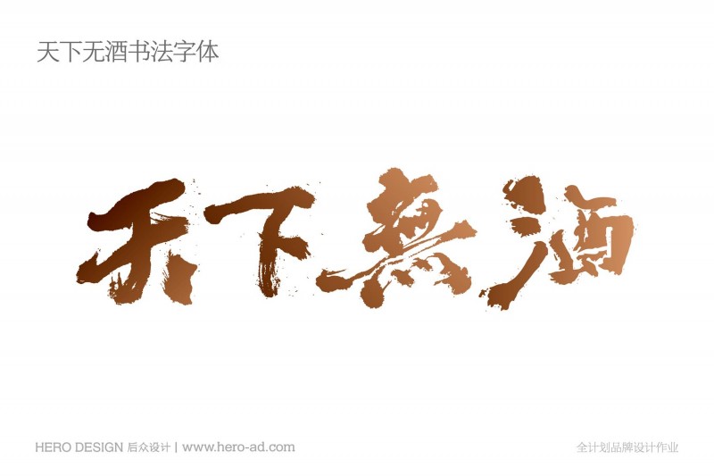 天下無酒的整體以傳統(tǒng)書法字體形態(tài)表現(xiàn),色彩以黑、金為主色調(diào),強調(diào)尊貴、禮品的屬性。字體挺拔朗峻、狂放自如,彰顯出天下無酒的沖天豪氣,與系列選酒品牌的名酒特性相匹配。