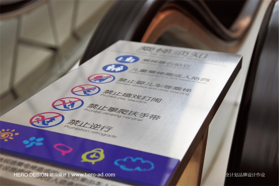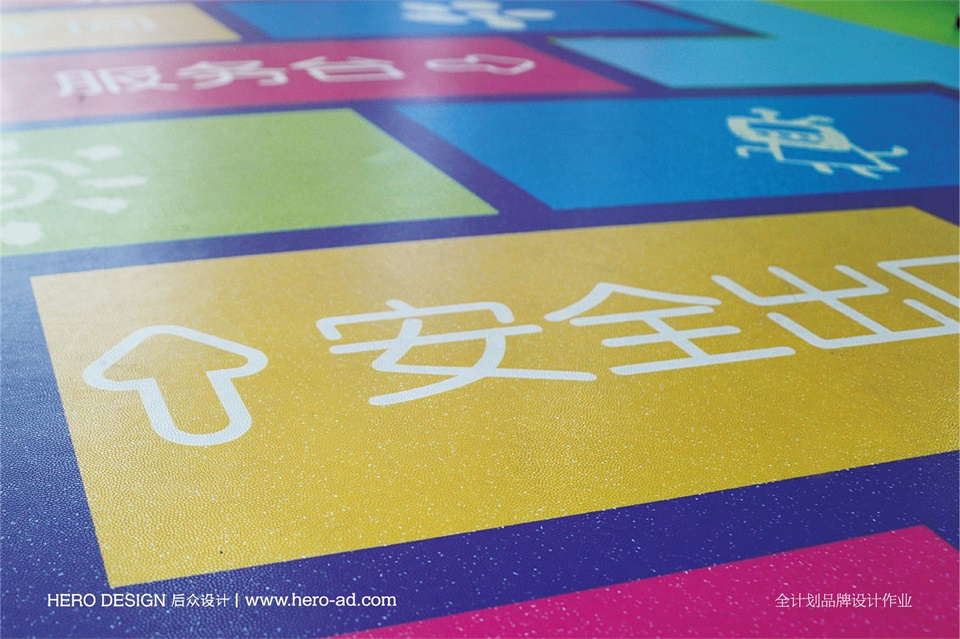 在后期商場(chǎng)導(dǎo)視環(huán)境的規(guī)劃中,我們也充分考慮到了兒童的因素,創(chuàng)作了豐富多趣的蠟筆插畫作為輔助圖形,使得整個(gè)導(dǎo)視環(huán)境部分即保留了導(dǎo)視的功能性也最大限度的體現(xiàn)了兒童的童趣感,為后續(xù)的品牌延伸做了理性的規(guī)劃。