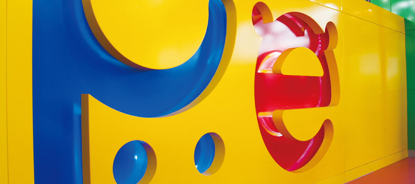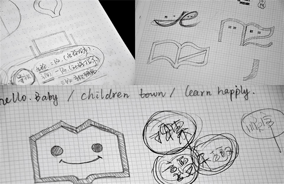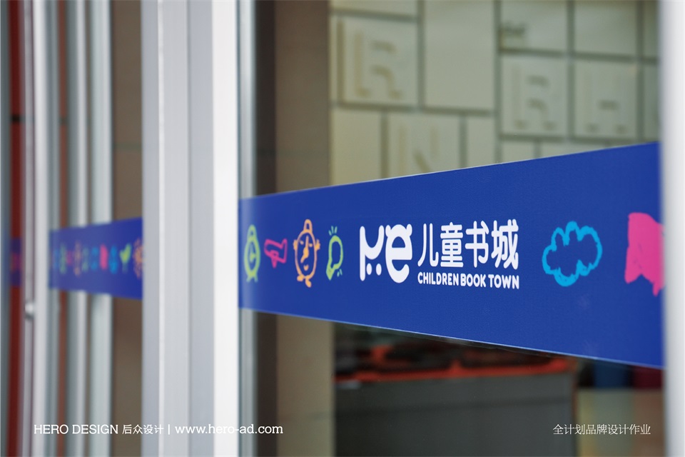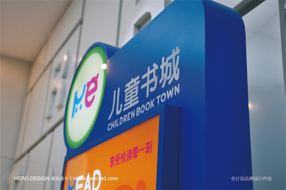在新華書店兒童書城的品牌形象創(chuàng)作過(guò)程中,我們通過(guò)對(duì)“兒童”英文“children”進(jìn)行字母釋義拆分,挑選出與其行業(yè)屬性相結(jié)合的“read 閱讀”與“enioy 享受”作為標(biāo)志以及品牌廣告語(yǔ)的創(chuàng)作來(lái)源。對(duì)應(yīng)的英文則為“children”中的“r”與“e”。其他六組詞語(yǔ)分別為改變、快樂(lè)、正在進(jìn)行、求知、探索、全新。