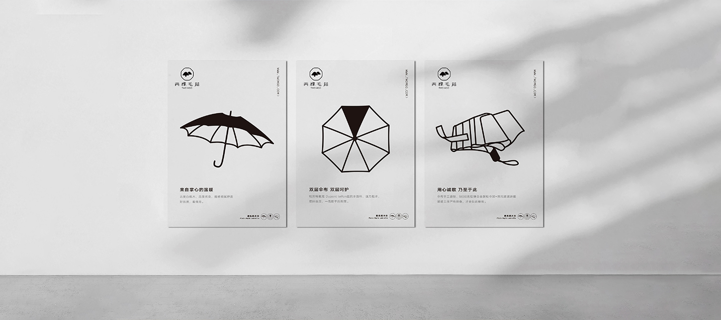 兩棵毛菇是一個時尚創(chuàng)意雨傘品牌,主要產(chǎn)品為折疊兩用晴雨傘。以“兩顆毛菇傘、陪伴在身邊”為品牌理念,通過對消費者的深入研析,為消費者打造出時尚、創(chuàng)意、優(yōu)質(zhì)、舒適的晴雨傘產(chǎn)品,其獲得了廣大消費者的喜愛和贊賞。