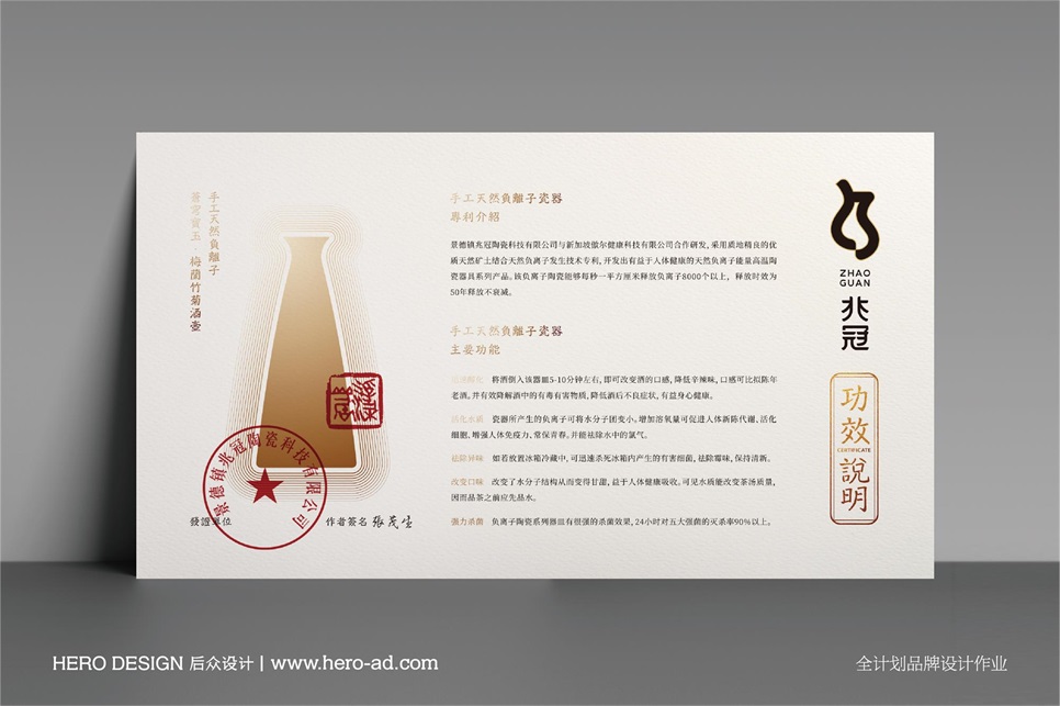 兆冠負離子陶瓷是韓明先生在負離子技術(shù)在人們?nèi)粘I顚用鎽?yīng)用的嶄新嘗試。本項目主打日用茶器、酒器,通過負離子對茶、酒的有益反應(yīng),提升人們飲酒品茶時的口感,助力健康。早在2014年,后眾設(shè)計與傲爾健康在負離子乳膠漆項目上就開始了深度的合作,基于過去多年的合作,相互間的認可與信任,是完成此次項目最大的基礎(chǔ)。