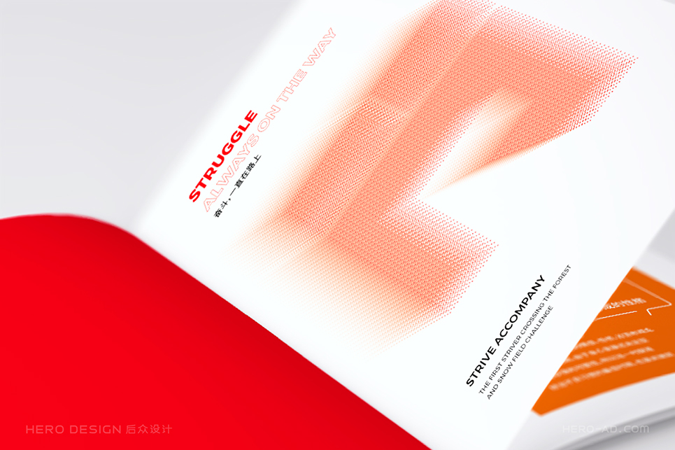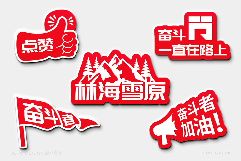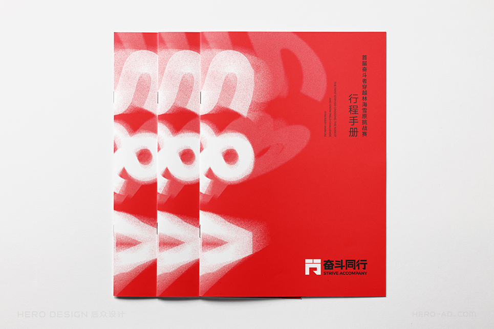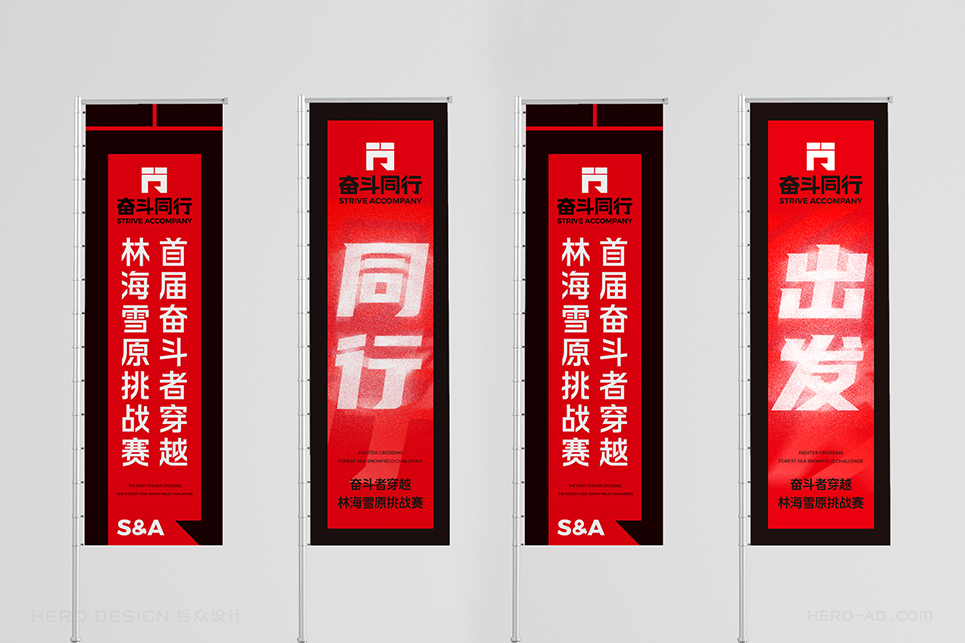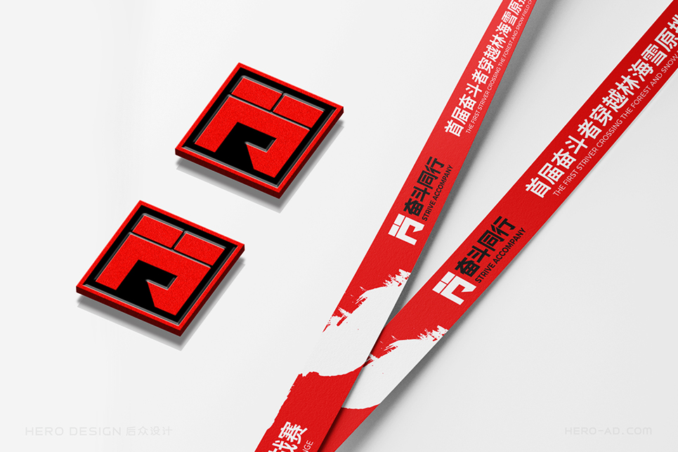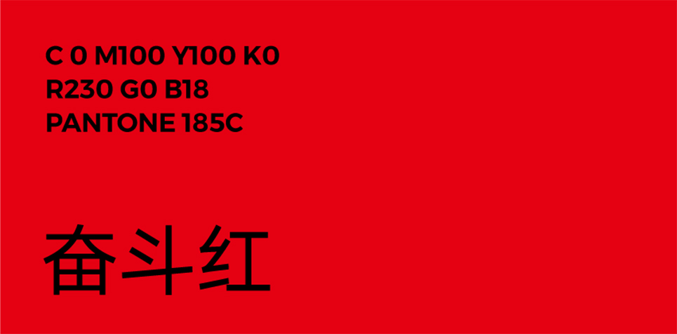 “奮斗同行”的品牌色彩選擇必須能夠展示奮斗者的活力與激情,同時要考慮到“奮斗同行”主要以戶外活動為主,多數(shù)時候是在草原、森林、戈壁等地方徒步行進,而由于個體體質(zhì)的差異,行進隊伍不可避免的會拉長,而行走路線的沿途引導,必須醒目,這就要求色彩的可見波長要長,色彩要盡量鮮艷,以保證遠距離眺望觀測時的準確。最終我們確定了紅色作為品牌的主色調(diào),我們將其稱之為“奮斗紅”。