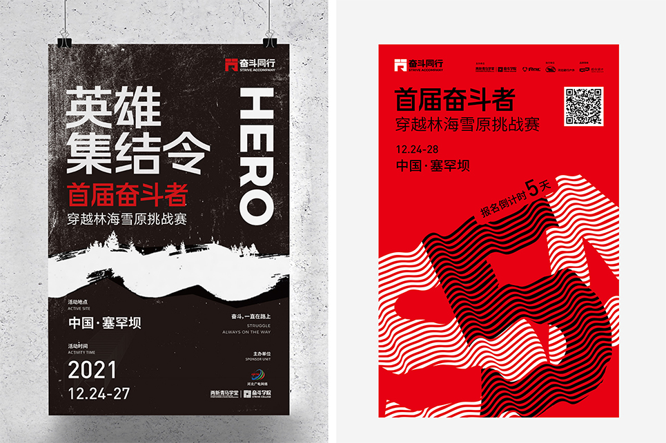 “奮斗同行”戶外成長實踐計劃成員招募以眾籌的形式進行,眾籌招募的傳播過程,也是項目形象的展示過程,必須全面的展示出項目的意義和價值,也要通過具有感召力的文字和畫面,對奮斗者產(chǎn)生心理吸引,同時還要把項目的基本特點表述完整。一系列的招募海報,便是“奮斗同行”在奮斗者之間相互傳播與鼓舞的力量。