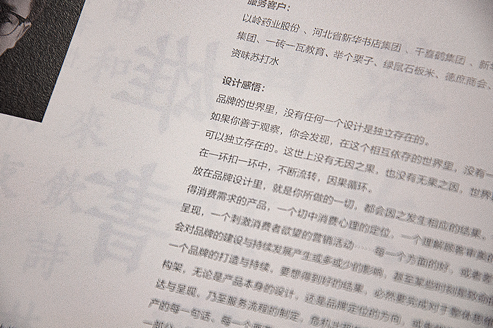+86代表中國(guó),+86設(shè)計(jì)共享平臺(tái)是由設(shè)計(jì)師創(chuàng)建,并服務(wù)于設(shè)計(jì)師的公益平臺(tái),以服務(wù)設(shè)計(jì)師,提升設(shè)計(jì)價(jià)值,實(shí)現(xiàn)人類更美好的生活為宗旨。人的才華是宇宙中寶貴的財(cái)富,設(shè)計(jì)力是人類發(fā)展的原力。從人類誕生之日起,人類就憑借著智慧不斷的進(jìn)化和發(fā)展,這里面不可避免的存在著“設(shè)計(jì)”!《+86 Designer100中國(guó)設(shè)計(jì)紅寶書(shū)》,集合活躍在中國(guó)當(dāng)下品牌視覺(jué)傳播領(lǐng)域的100位中青年設(shè)計(jì)師的代表作品,展示設(shè)計(jì)領(lǐng)域的杰出成就和代表人物以及優(yōu)秀作品,促進(jìn)設(shè)計(jì)領(lǐng)域的發(fā)展,是設(shè)計(jì)師收藏和了解中國(guó)當(dāng)代設(shè)計(jì)實(shí)踐和發(fā)展的典藏書(shū)籍,也是一本企業(yè)尋找設(shè)計(jì)服務(wù)的權(quán)威指南。本書(shū)讓設(shè)計(jì)當(dāng)事人講述設(shè)計(jì)故事、剖析設(shè)計(jì)思路和理念、展示代表性的設(shè)計(jì)作品,對(duì)廣大設(shè)計(jì)工作者和愛(ài)好者都有很好的借鑒和啟發(fā)價(jià)值。后眾設(shè)計(jì)入選作品包括安莫希林、德庶商會(huì)、綠鼠大米三個(gè)最新案例。除案例展示之外,書(shū)中還展示了后眾創(chuàng)始人賈振華先生多年來(lái)在品牌形象建設(shè)方面的心得體會(huì)。在這個(gè)相互依存的世界里,沒(méi)有一樣?xùn)|西是可以獨(dú)立存在的一個(gè)品牌的打造與持續(xù),要想得到好的結(jié)果,必然要完成對(duì)于整體思維的構(gòu)架,無(wú)論是產(chǎn)品本身的設(shè)計(jì),還是品牌定位的方向,或者視覺(jué)形象的表達(dá)與呈現(xiàn),及至服務(wù)流程的制定,危機(jī)出現(xiàn)后解決方案的實(shí)施……品牌的生產(chǎn)的每一句話、每一個(gè)畫(huà)面、每一段文字、每一個(gè)動(dòng)作,都是品牌整體的一部分,所有的這一切,都與結(jié)果休戚相關(guān),而結(jié)果又與這個(gè)品牌影響下的每一個(gè)人相關(guān)。整體思維是做品牌設(shè)計(jì)時(shí)必須要貫徹的一種基本思維,它既是占位,也是依據(jù),既是方法,也是路徑。